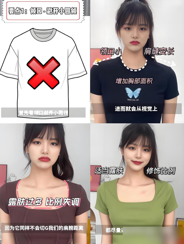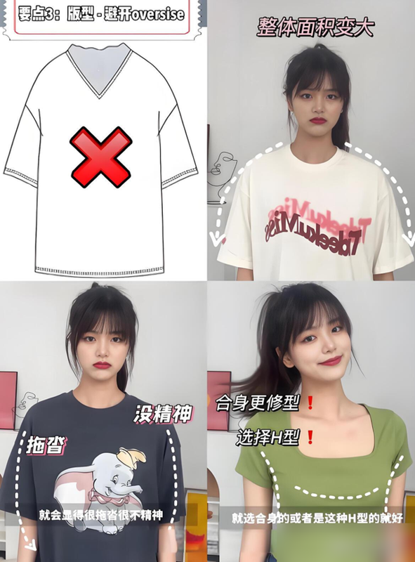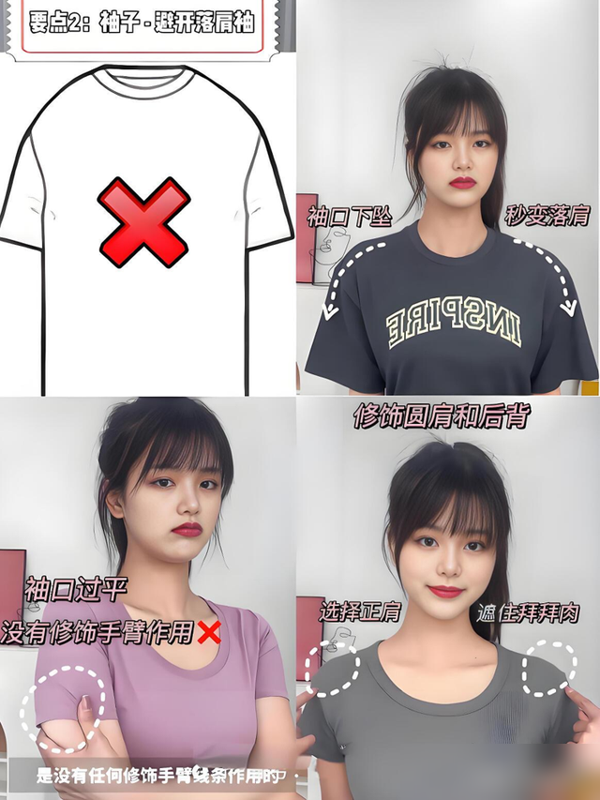 以前总追潮流爆款,结果落肩袖的宽松版型穿身上像披麻袋,小圆领卡得脖子短半截,肩膀还胖一圈。