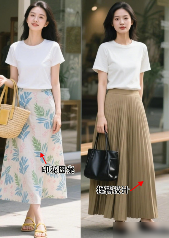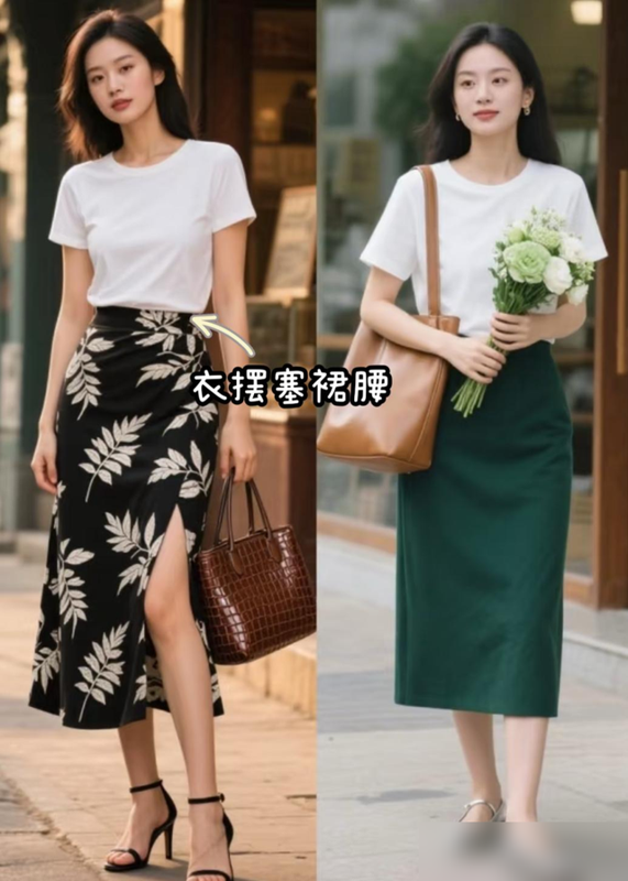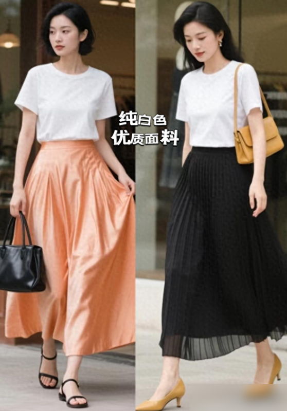 穿搭这事儿真不用太使劲,一件好T恤配条简单裙子或裤子,随手一套就有松弛感。