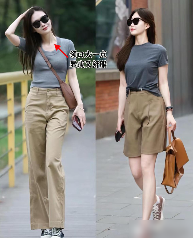 这几年才琢磨透,选T恤真不是小事,关键在几个细节:领口别太小,大V领或U型领真是显瘦法宝,露出锁骨线条,脖子立马拉长,脸型都显精致了。